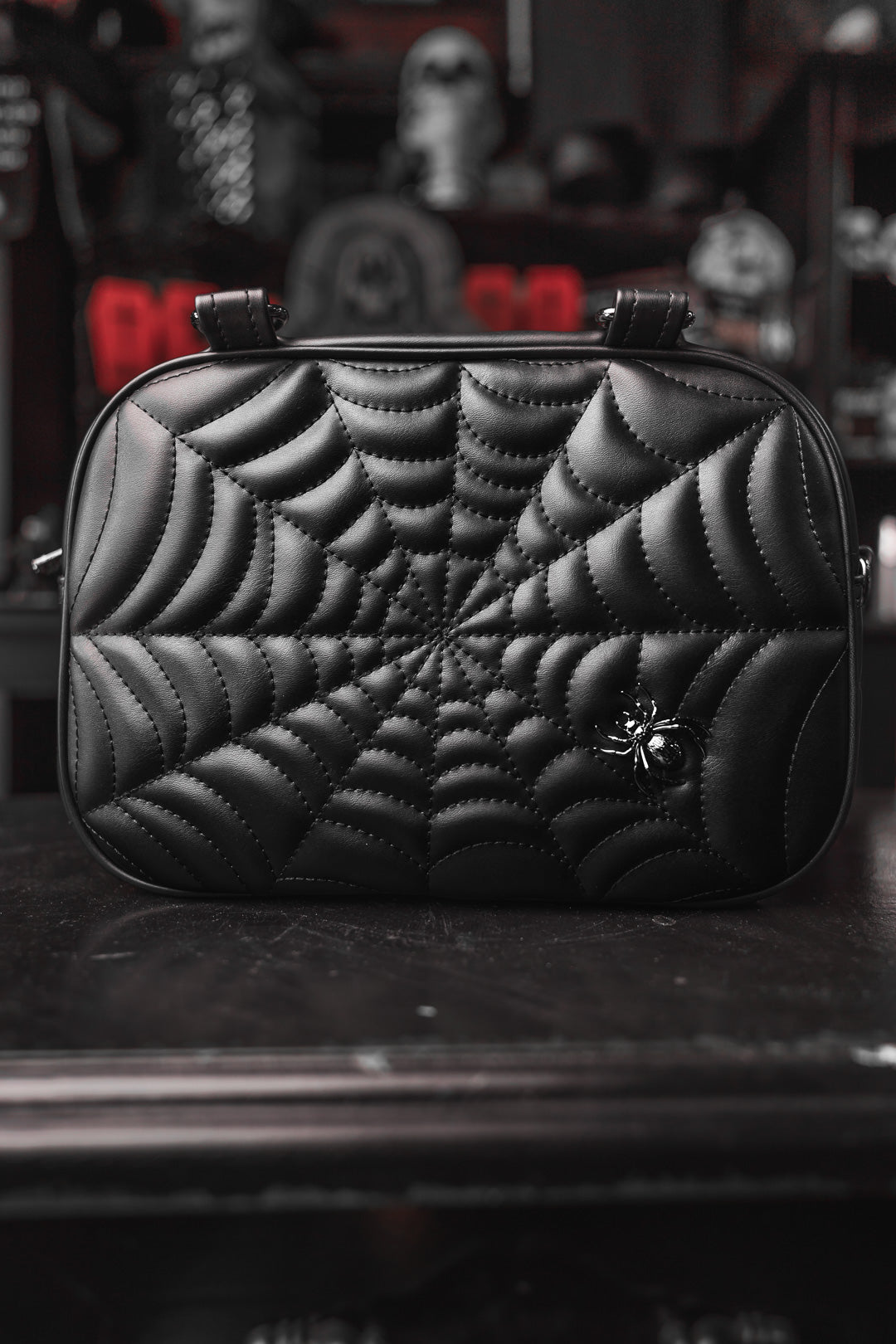 HAND CRAFTED: Mean Face Pumpkin bag is made with Black with Glow in the Dark spiderweb and stitching makes this pumpkin bag stand out even more, pocket inside, black adjustable strap with chrome hardware. Measuring approximately 11 x 10 1/2 x 3 inches ... made to order