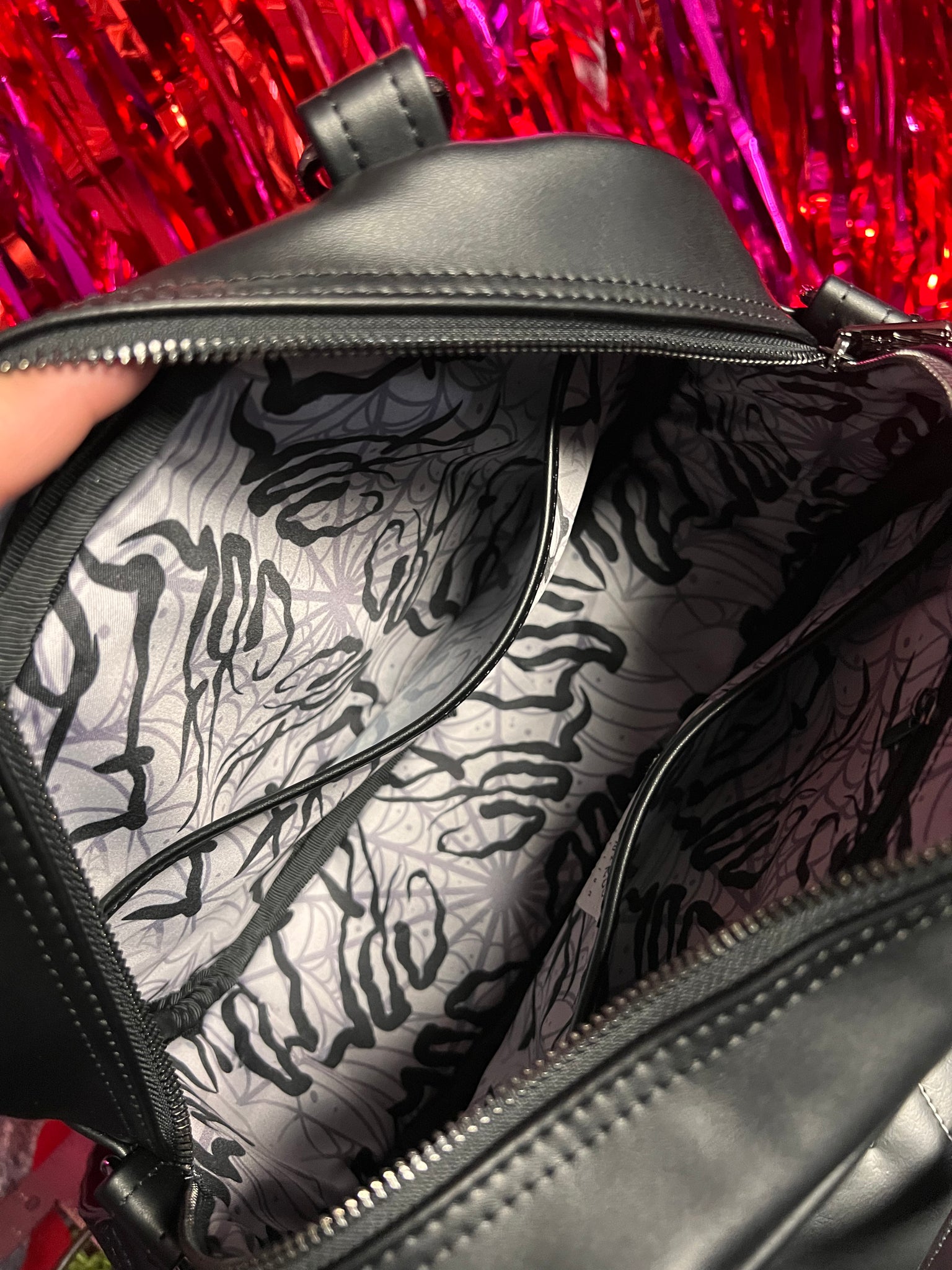 Joining our Pumpkin Kult collection is Our New smaller version of our Crypt bag which comes in Black with Orange Glitter face. They have our signature We Stay creepy lining, chrome hardware and a black zipper with a We stay creepy zipper pull. These are only crossbody bags. Measuring at approx. 7x5x3, these bags are bigger than the mean baby pumpkin kult bags. Love this style? Make sure you check our larger version!
