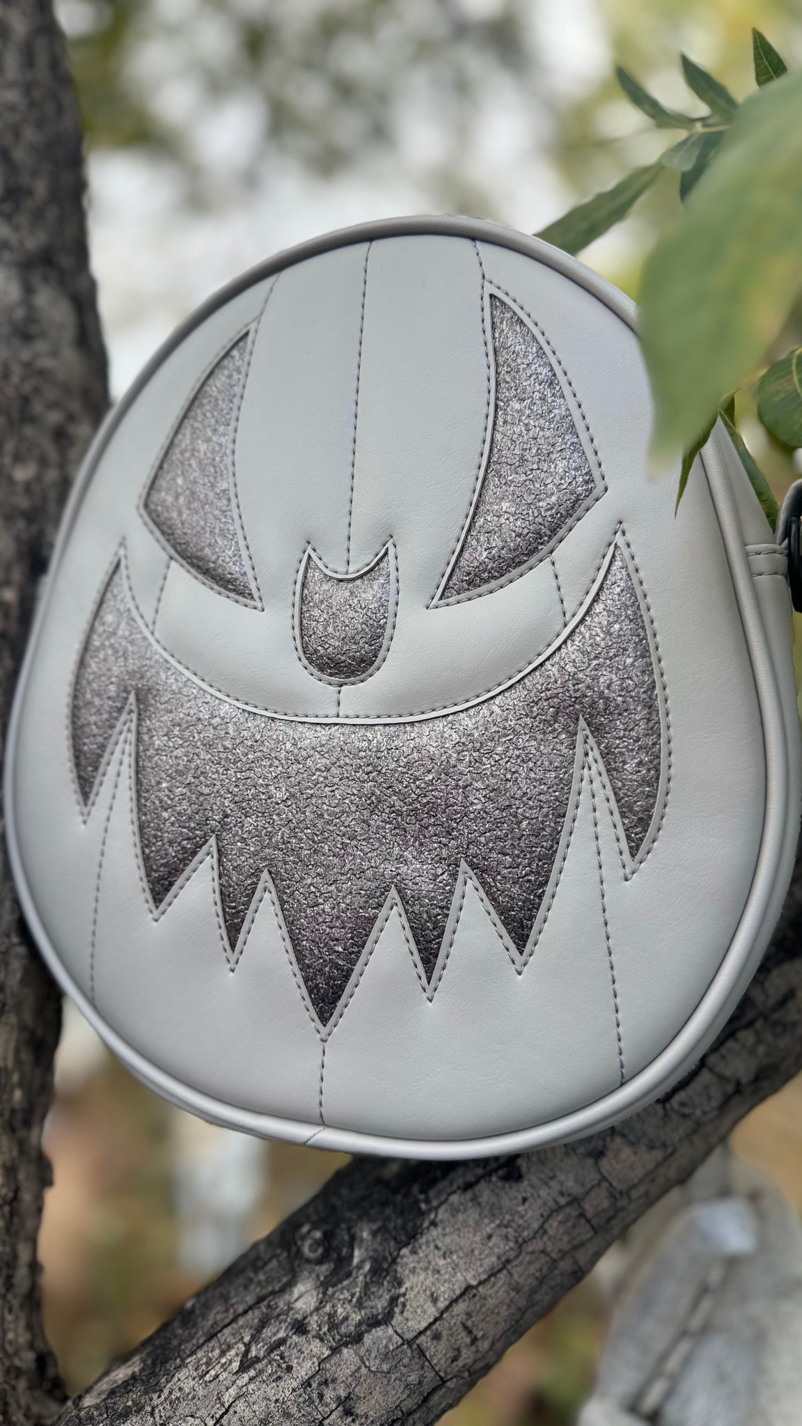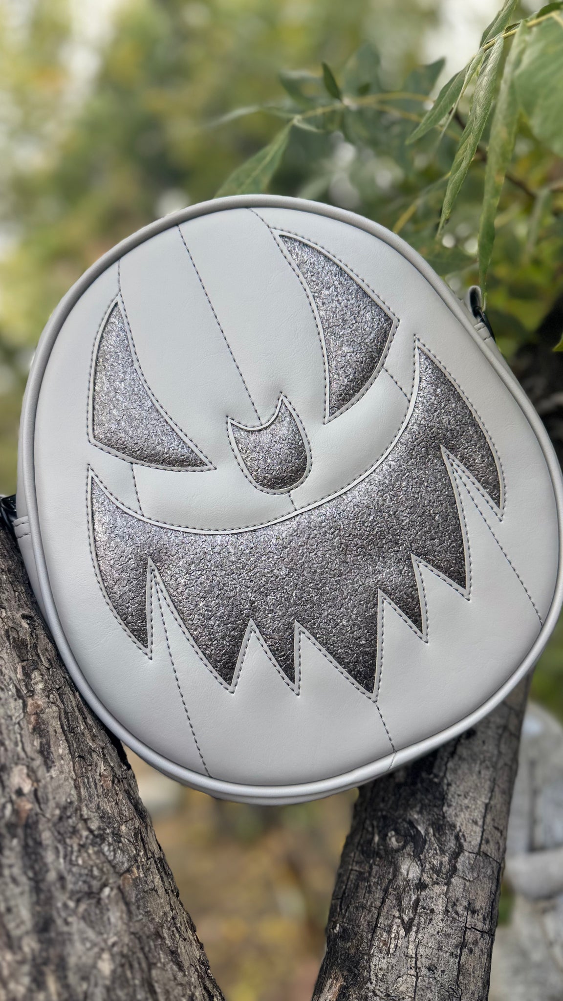 HAND CRAFTED : Our Oval Pumpkin bag is made with Grey and grey stone like material , pocket inside , black adjustable strap with chrome hardware . Measuring approximately 11 x 10 1/2 x 3 inches ...Already made and ready to ship