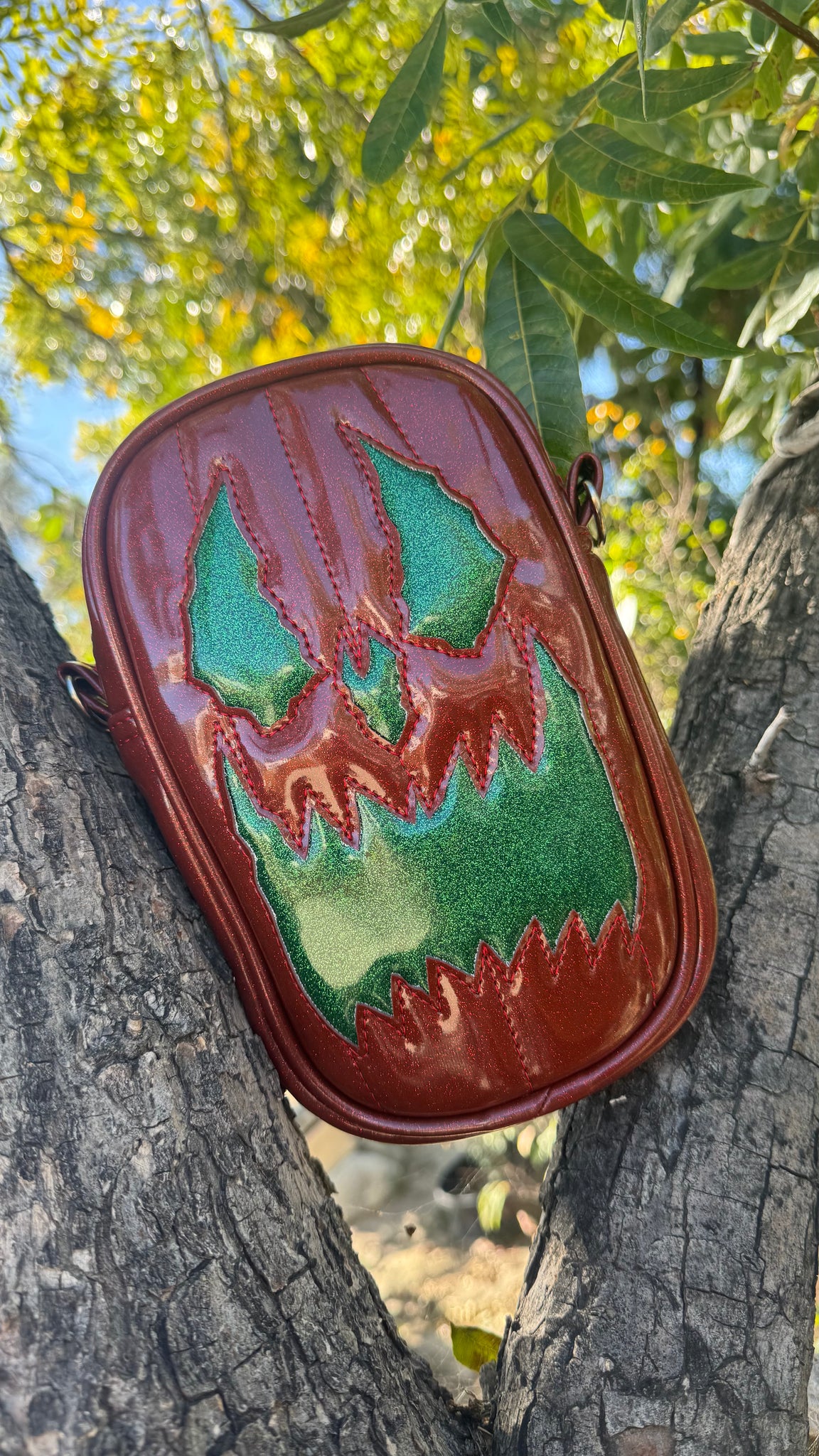 These are made with Red Glitter and Green glitter vinyl and include a long Black strap with chrome hardware.